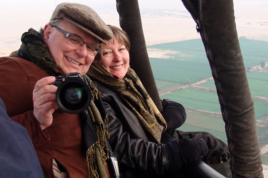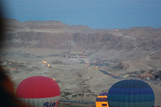 A bus takes us to a water taxi where we load into a van on the other side of the Nile to ride to where the huge balloons are being filled with hot air for our ride over the ancient landscape.